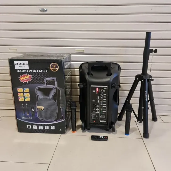 Speaker Bluetooth AIWA 8 / 15 Inch Original bonus stand speaker dan mic wirelles Speaker Metting portable Keren Terbaru