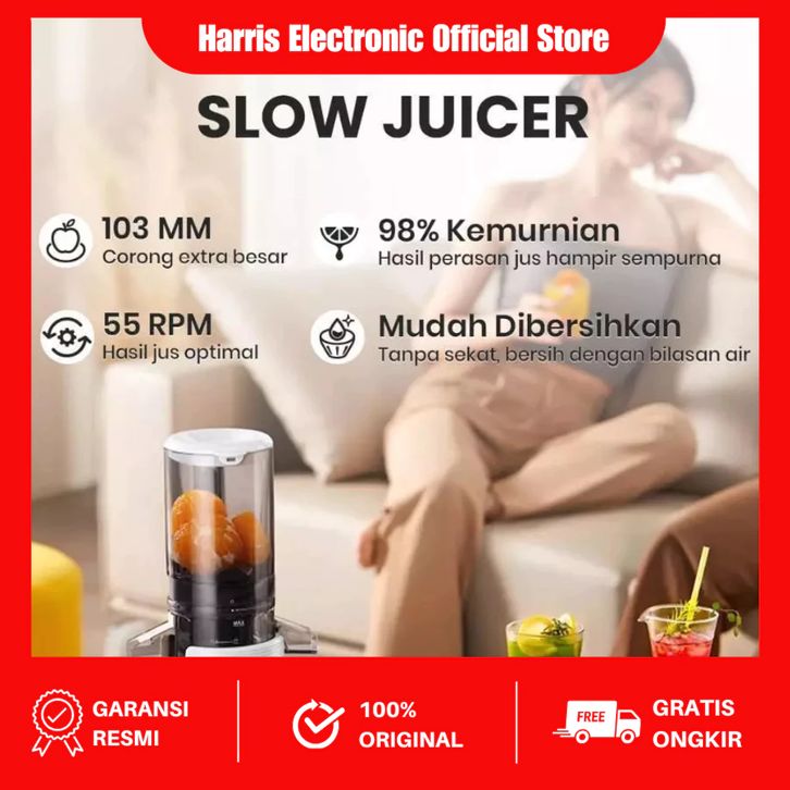 JUICER LOW WATT MECOO 6002 AESTHETIC SLOW 100 WATT BPA FREE TRITAN FOOD GRADE FREE EASY CLEAN GARANSI RESMI