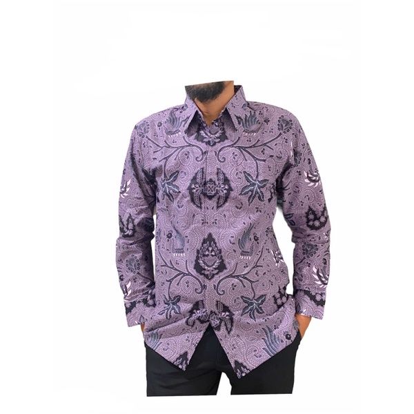 WAHYU Ungu Kemeja Batik Pria Lengan Panjang Asli Solo Sragenan Lapis Furing