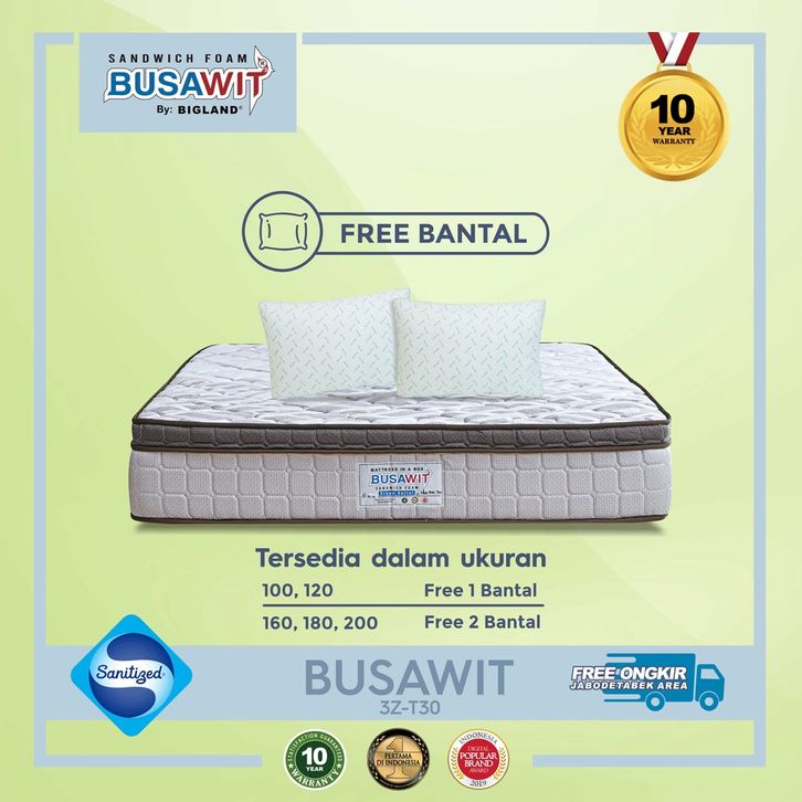 KASUR SPRINGBED BIGLAND BUSAWIT TEBAL 30 CM PLUSTOP SPRING BED FULL SET 200X200 180X200 160X200 140X200 120X200 100X200
