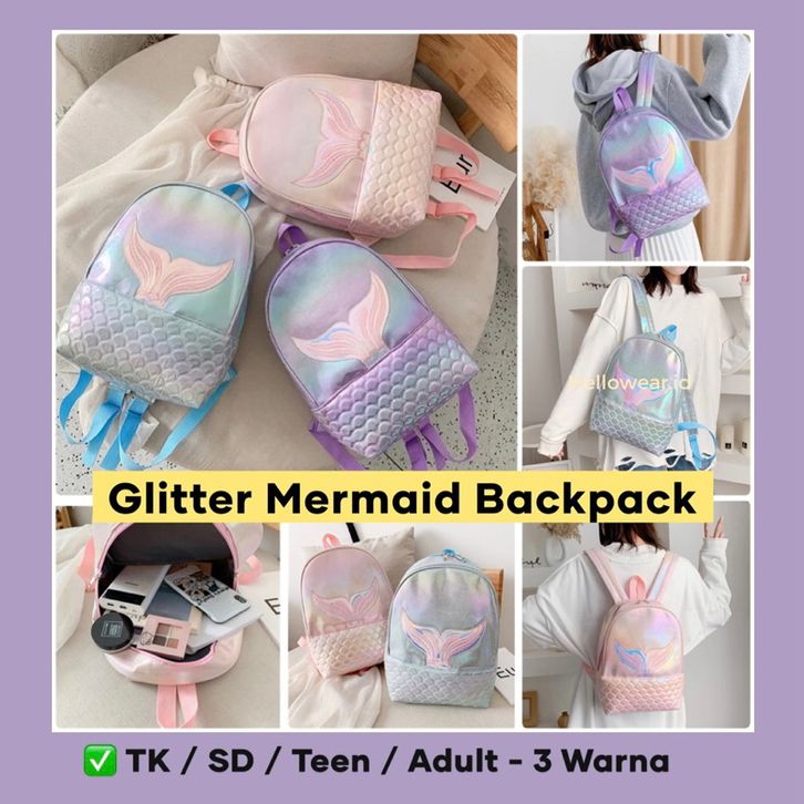 Tas Ransel Mermaid Backpack Kids School Bag Tas Ransel Anak TK SD holo Mermaid Glitter Bag Tas Sekolah Anak Tas Fashion