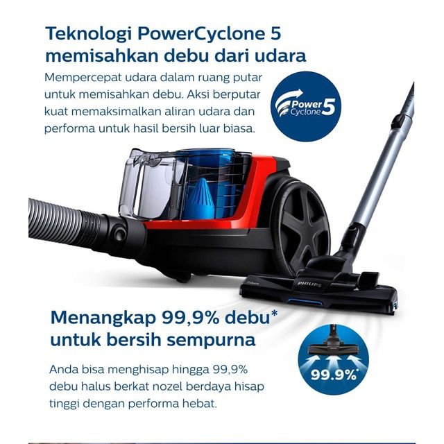 PHILIPS BAGLESS VACUUM CLEANER-FC9330-09,POWERCYCLONE5,DAYA JANGKAU 9M,NOZEL TRIACTIVE,PENGHISAP DEBU TERBARU