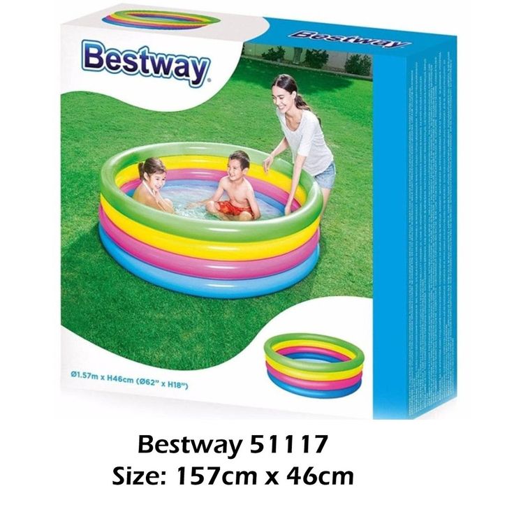 Kolam Renang Bestway 51117 Kolam Renang Anak Karet Pelangi 4 Ring 157cm x 46cm Bestway Rainbow Play Pool Kolam Murah