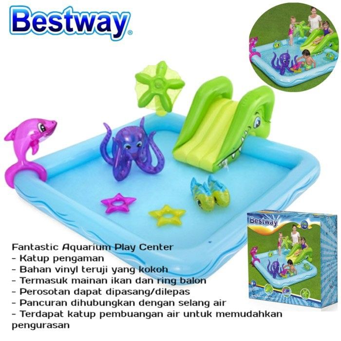 Kolam Renang Anak Keluarga Fantastic Aquarium Dan Menara Penjaga Pantai Besar Bestway 53052
