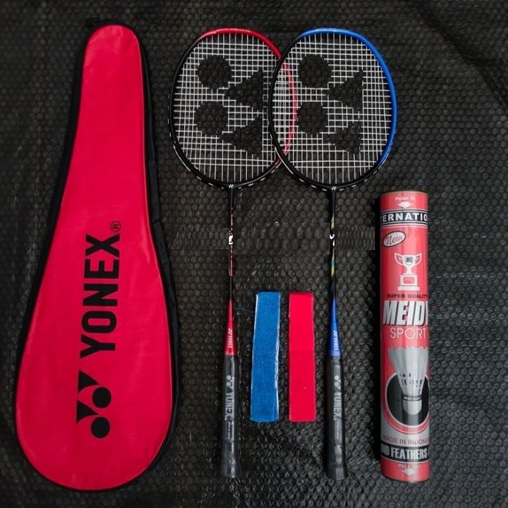 PAKET KOMPPLIT RAKET BADMINTON YONEX KOMPLIT 2 RAKET+TAS+2 GRIP HANDUK+KOK PAKET LENGKAP RAKET BULUTANGKIS BADMINTON