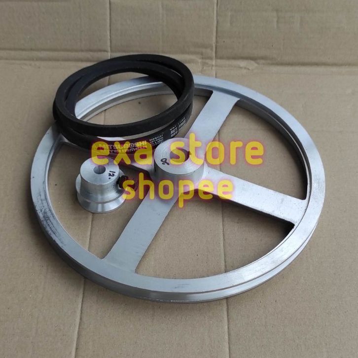 Paket pulley A1 12" dan 2" PLUS Fanbelt lubang as PILIH puli alumunium