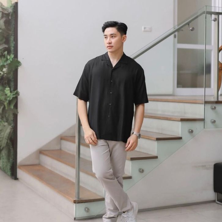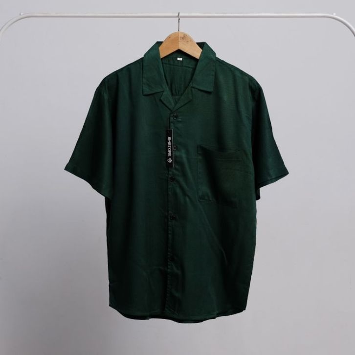 KEMEJA RAYON POLOS LENGAN PENDEK PRIA WANITA PREMIUM SHORT SHIRT