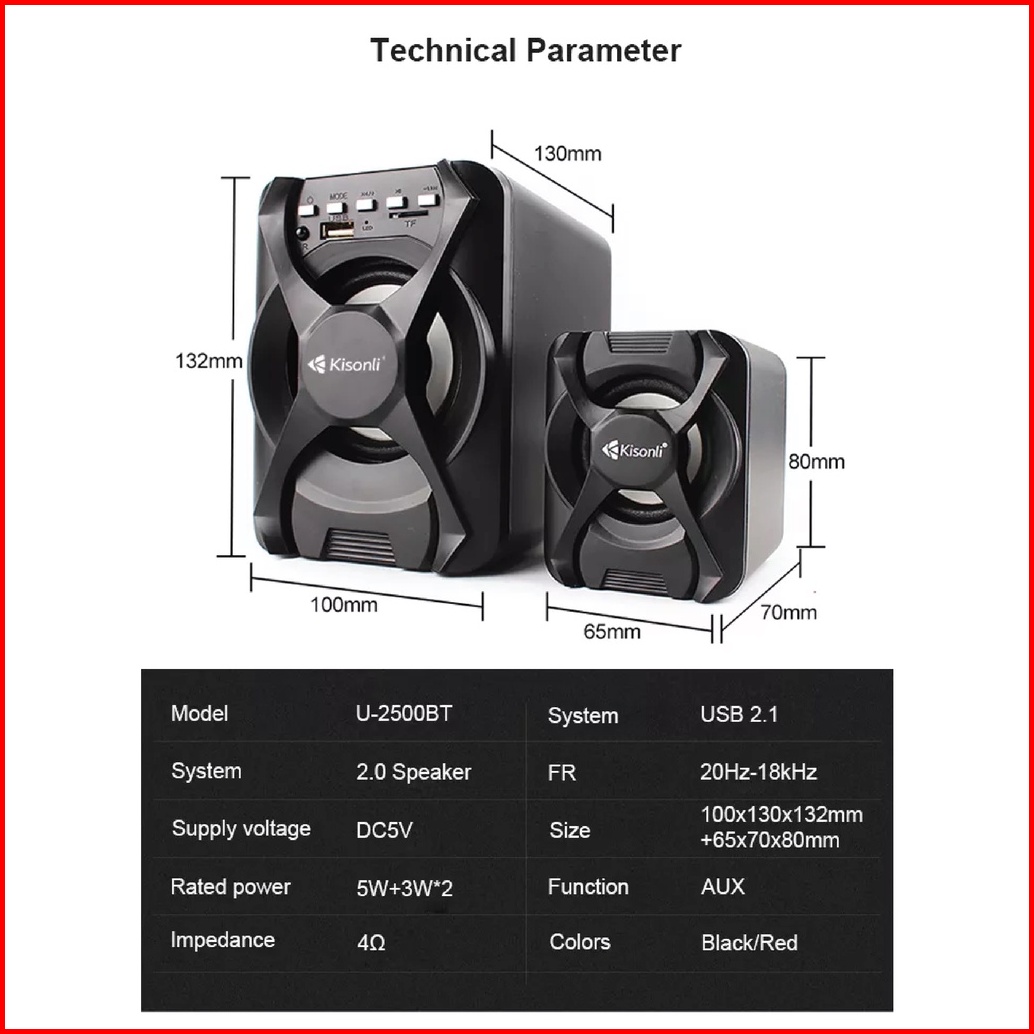Kisonli Speaker Bluetooth Bass Gaming U2500bt Garansi 1 Tahun Resmi