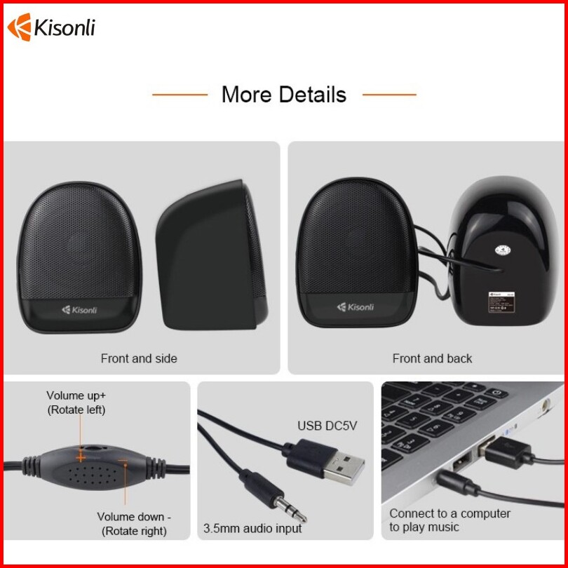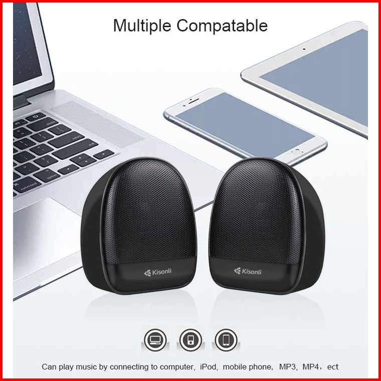 Kisonli Ks08 Speaker Laptop Komputer Mini Usb 5v Aux 3.5mm Suara Jernih Bass Kuat