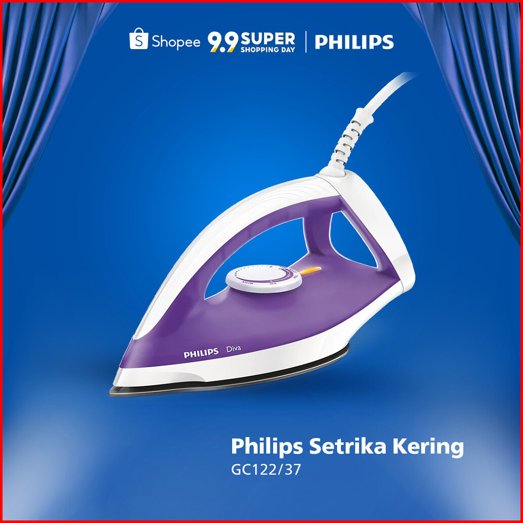 Philips Setrika Kering Diva Gc122 37 Ungu - Setrikaan Promo Murah Tapak Strika Anti Lengket Tahan Lama