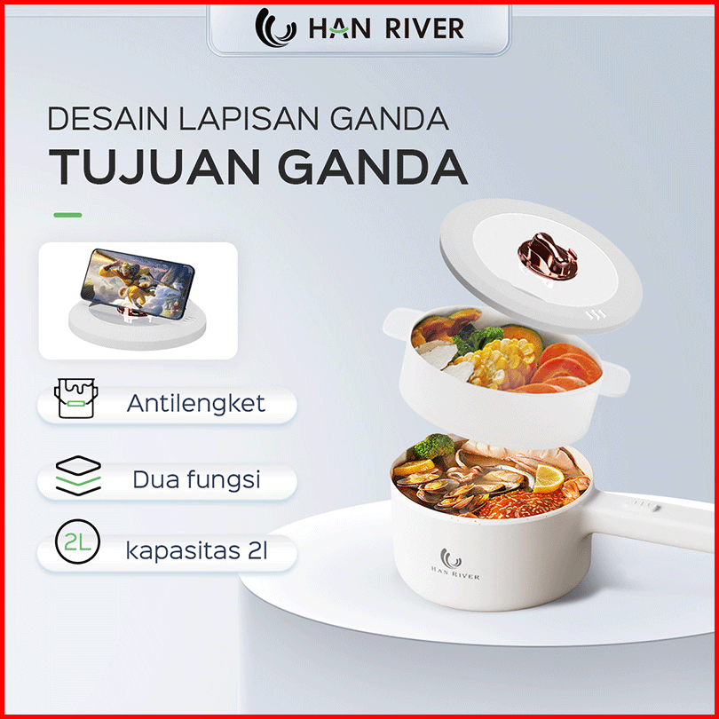 Han River Panci Listrik Serbaguna 2l Hrdzg02 Kompor Listrik Pintar Pelajar Panci Listrik Asrama Perjalanan Bisnis -putih
