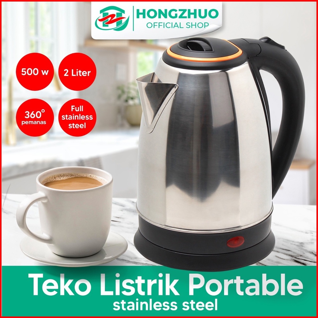 Hongzhuo Teko Listrik 2 Liter Full Stainless Steel Pemanas Air Electric Kettle Ketel Besar Otomatis 500 Watt