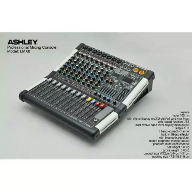 MIXER ASHLEY LMX8 8 CHANNEL FULL MONO (USB, BLUETOOTH) ORIGINAL