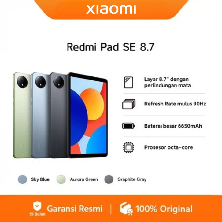 XIAOMI REDMI PAD SE 8.7 (4/128GB) LAYAR 8.7" PERLINDUNGAN MATA REFRESH RATE 90HZ BATERAI 6650MAH PROSESOR OCTA-CORE