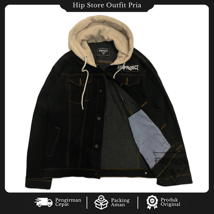 JAKET DENIM PRIA DENGAN HOODIE | JAKET JEANS HOODIE SPLASH BLACK HOODIE READY SIZE S M L XL | JAKET HOODIE BAHAN PREMIUM