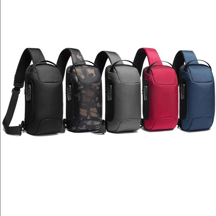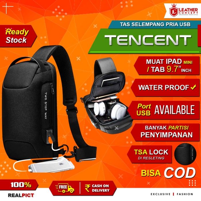 Tas Selempang Pria Tas Pria Sling Bag Pria Charger USB - TENCENT new - Merah