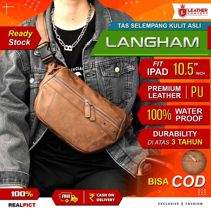 Tas Selempang Pria Waterproof Tas Pria Sling Bag Pria LANGHAM 100% ori