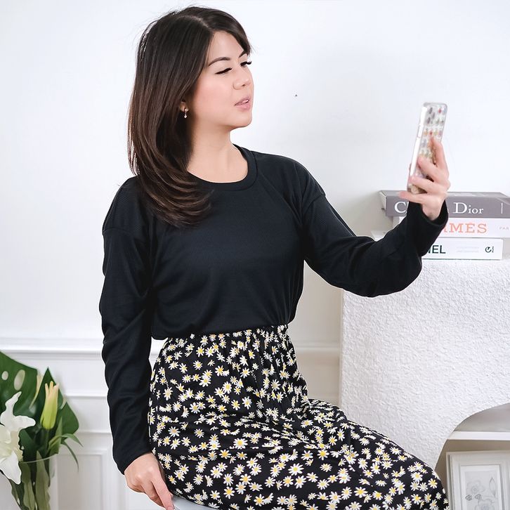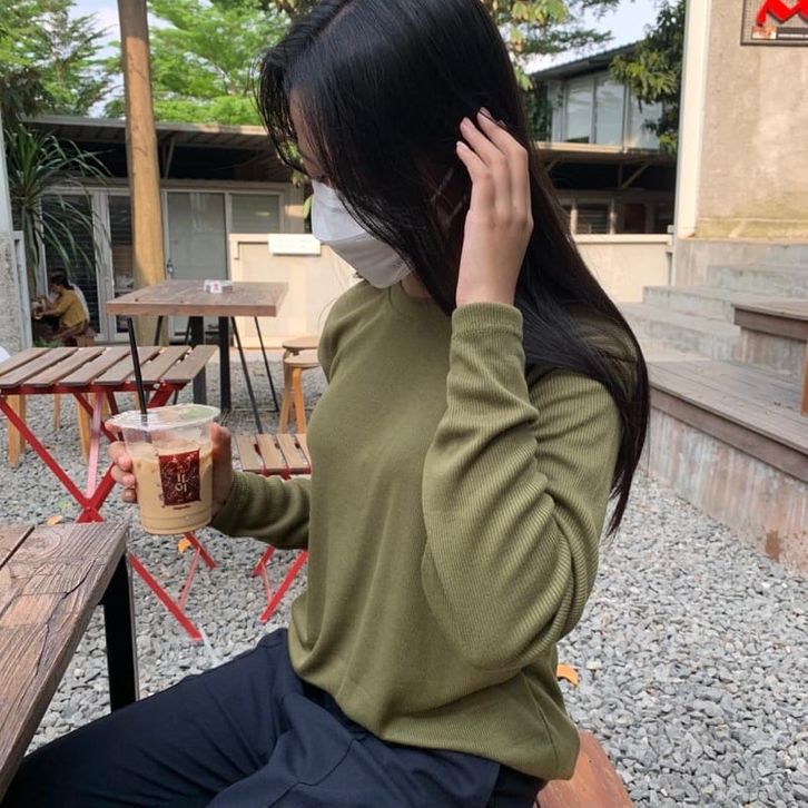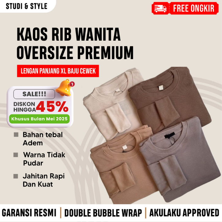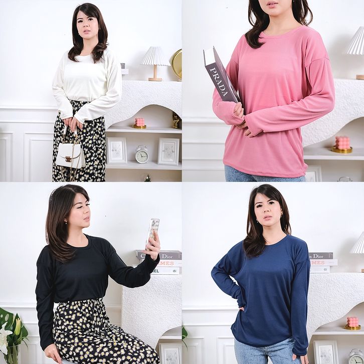 Kaos Rib Premiium Cewek Oversize Lengan Panjang XL Baju Cewek Atasan Kekinian Bahan Tebal Berkualitas Halus