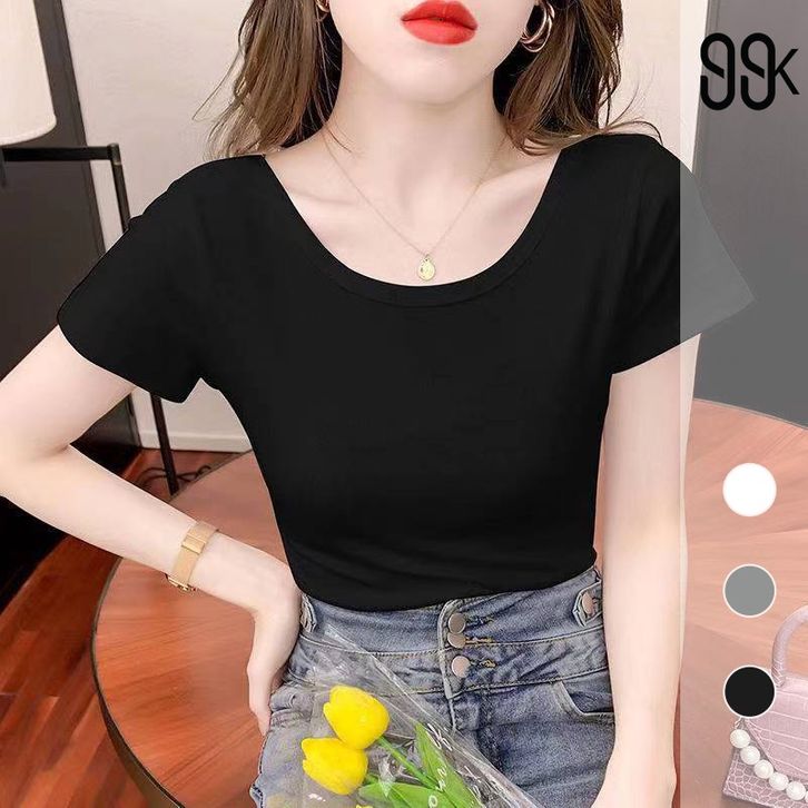 T-Shirt Casual Sexy Slim Fit Crop Top Kaos Lengan Pendek 1001 (S-XL)