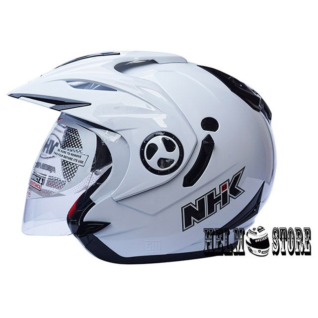 HELM NHK AVIATOR SOLID WHITE HALF FACE SNI NHK AVIATOR DOUBLE VISOR ORIGINAL
