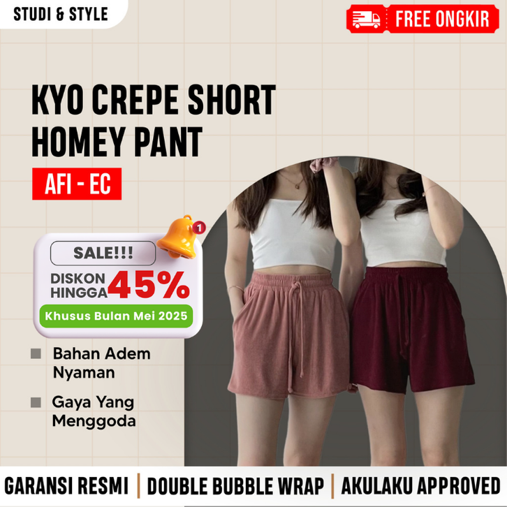Celana Pendek Kyo Crepe Homey Pant Fit To L Clana Santai Rumahan Cewek Fashion Cewek Warna Polos Kekinian