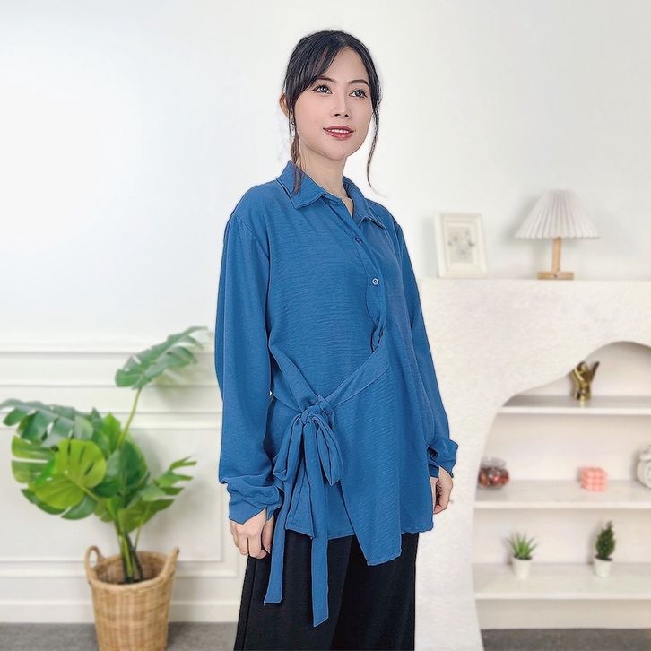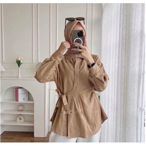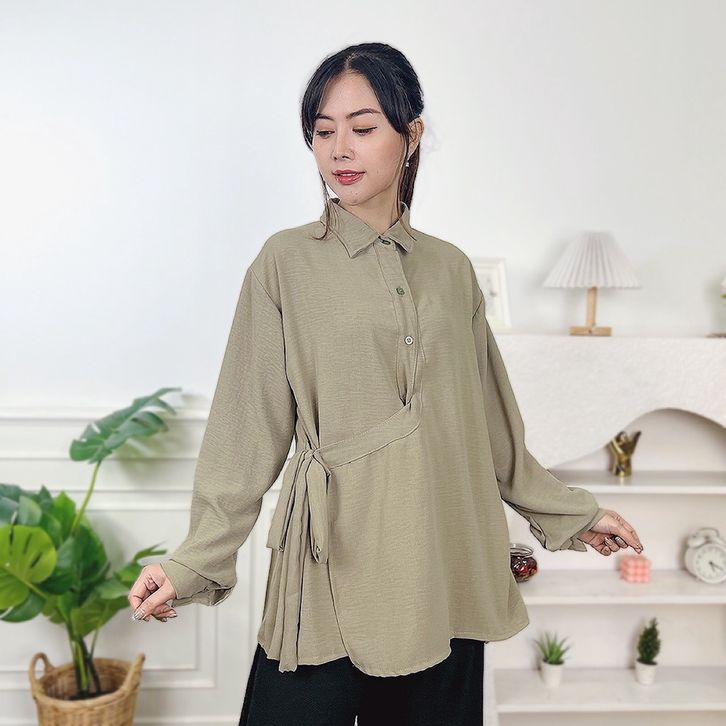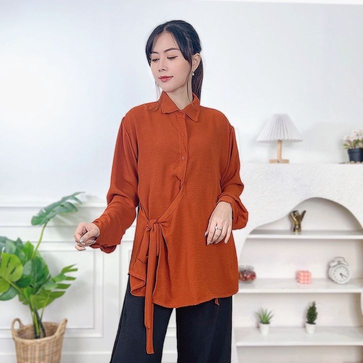 Baju Blous Cewek Atasan Kemeja Cewek Panjang Premium Airflow Crincle Ghina Top Cringkel Fashion Kekinian