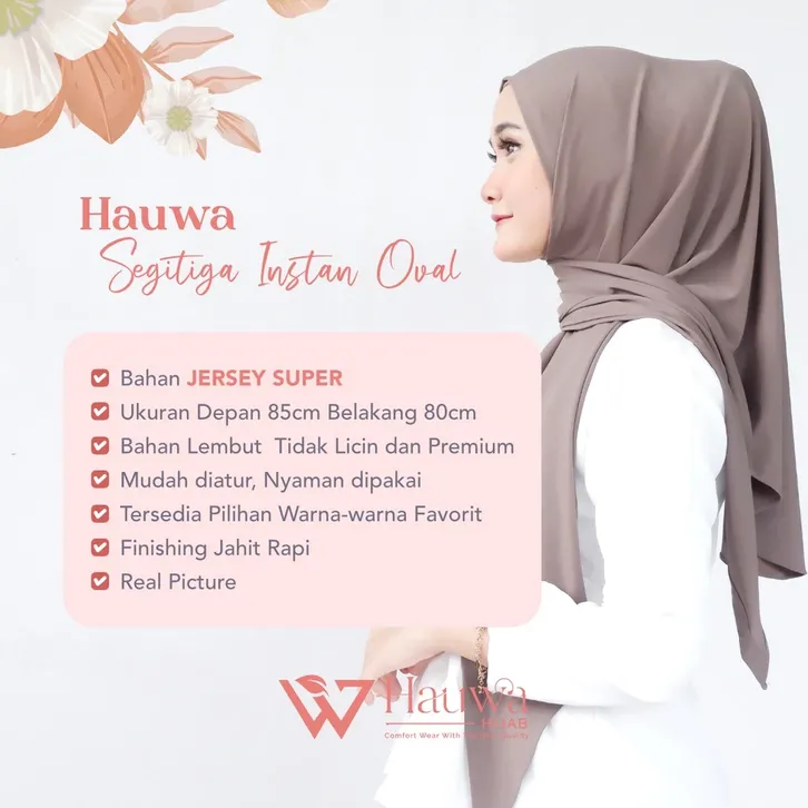Jilbab segitiga oval jersey original hauwa