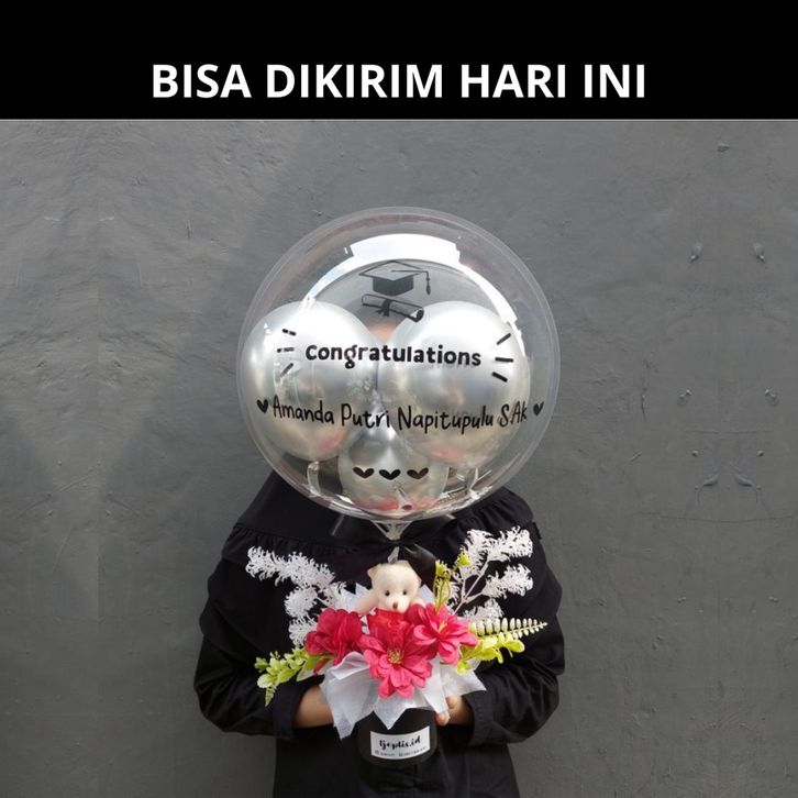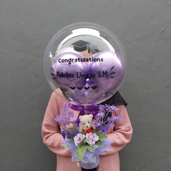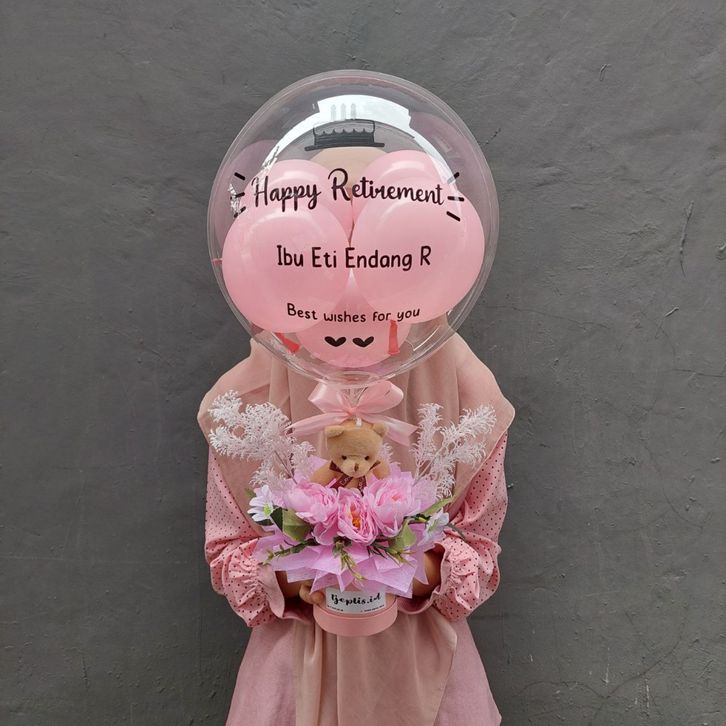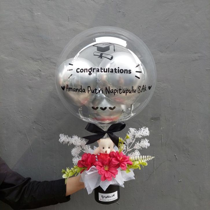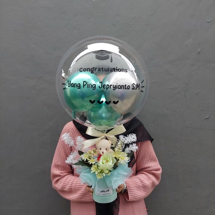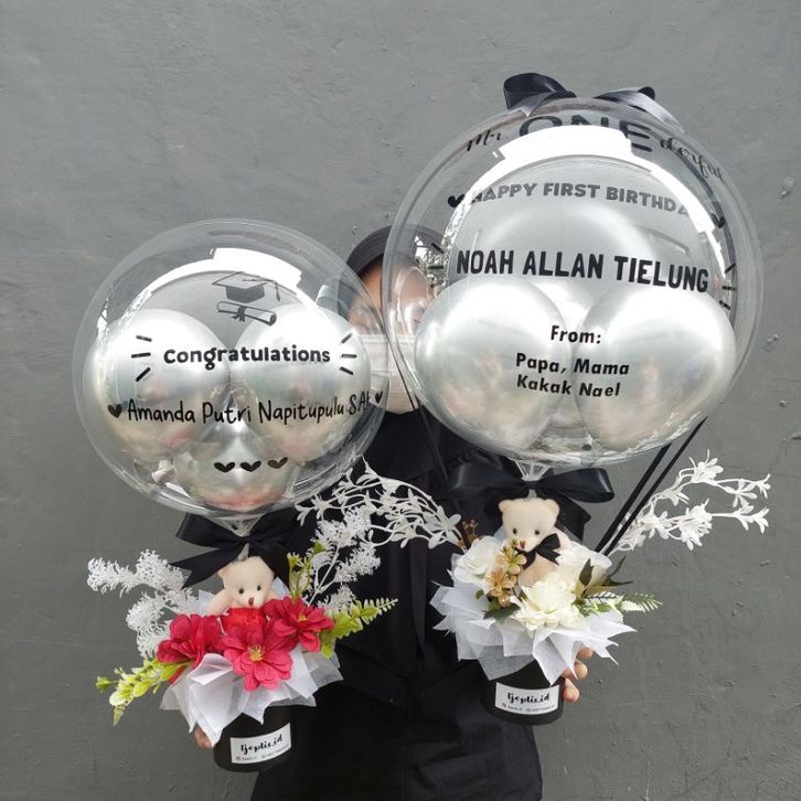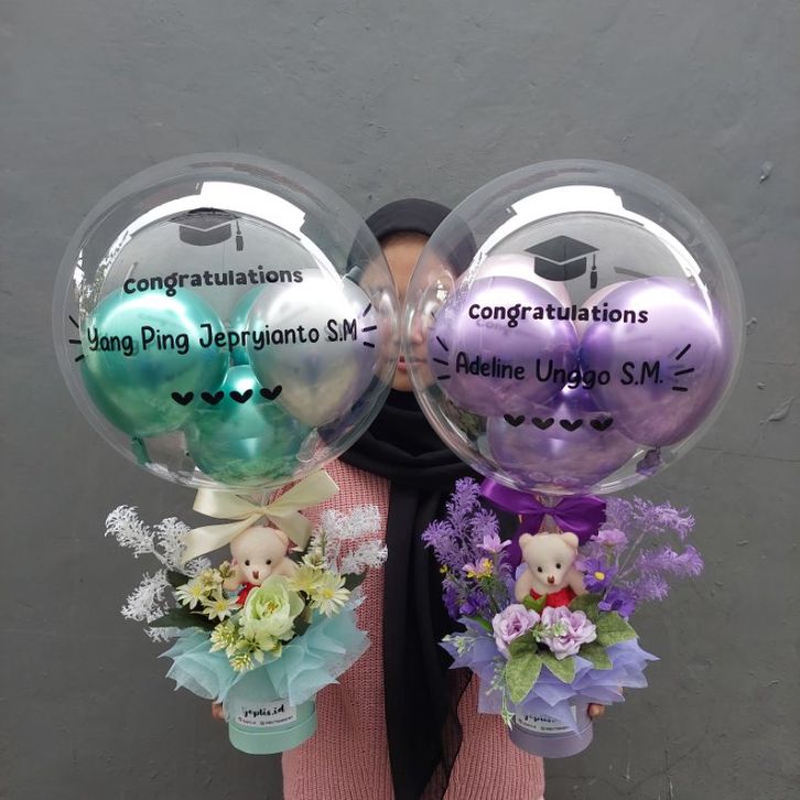 [Ready/Tidak PO] Buket Balon/Bouquet Balon + Boneka Mini + Xtra Small Tanpa Pita - tjeplis.id