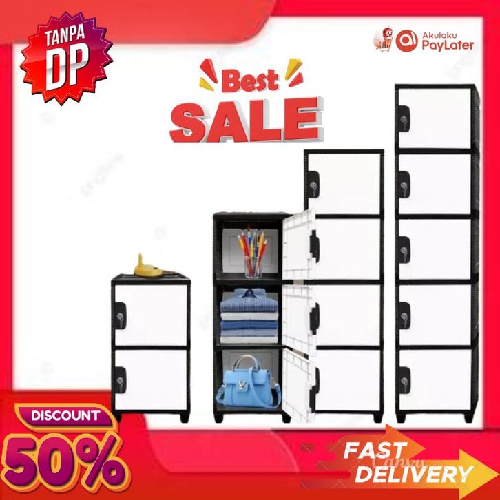 [Mall] Lemari Pakaian Plastik Hitam Putih - Kunci Panda
