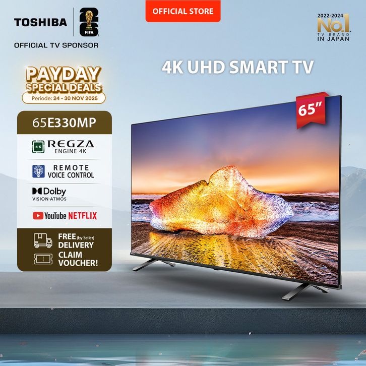 Toshiba TV 65" 4K Smart TV - Dolby Vision Atmos MEMC VRR ALLM Voice Control AirPlay Digital - 65E330MP