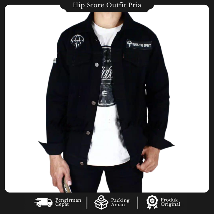 JAKET DEMIN PRIA TANGAN PANJANG TEBAL BAHAN PREMIUM JAKET JEANS DENIM BORDIR EMBLEM PRIA - BMTH BALCK