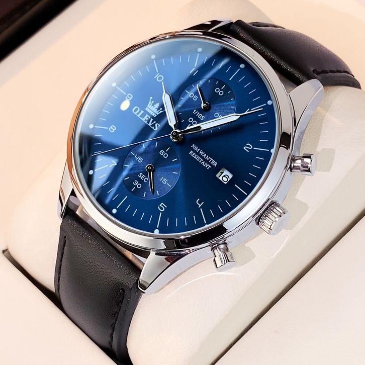 JAM TANGAN PRIA ANTI AIR OLEVS ORIGINAL KULIT TAHAN KEREN LED HITAM PUTIH LUXURY CHRONOGRAPH WATCH MEN MULTIFUNGSI