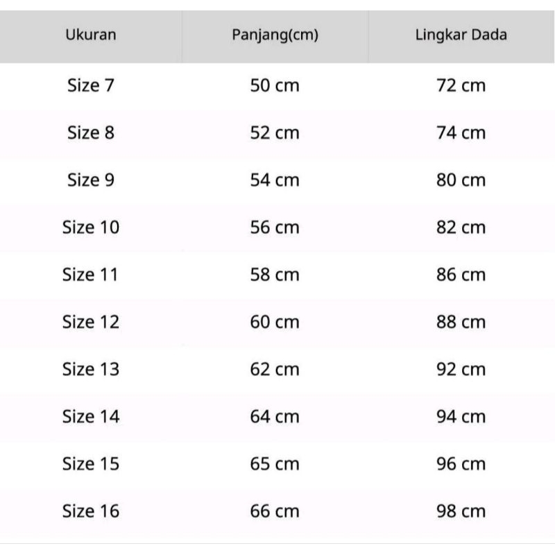 BAJU PUTIH SEKOLAH SD LENGAN PANJANG SIZE