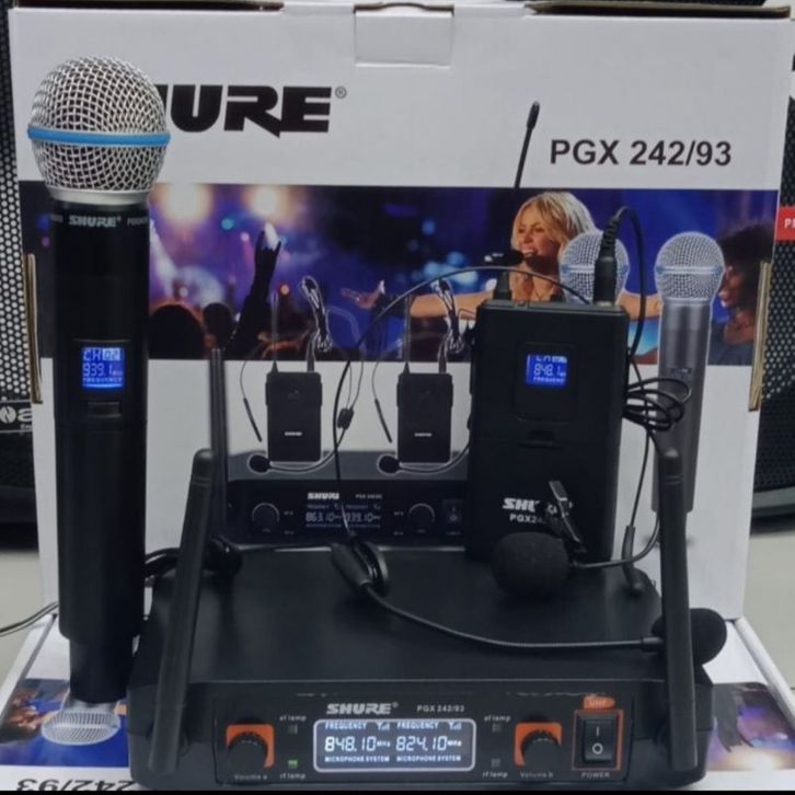 Mic Wireless 3 Mik SHURE SH242/93 PJH Werles Mikropon 1 Mik Pegang + 1 Mik Jepit Clip On + 1 Mik Bando aheadset Mikrofon
