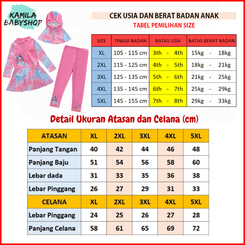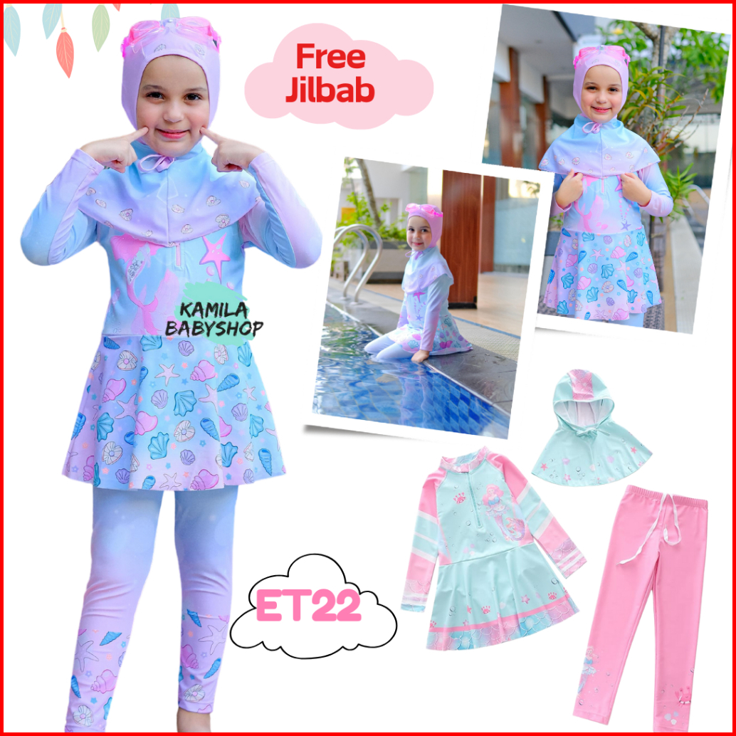 Et22 Baju Renang Anak Perempuan Jilbab Size Xl-5xl Usia 3-8 Th Baju Renang Anak Perempuan Hijab Resleting Baju Renang An