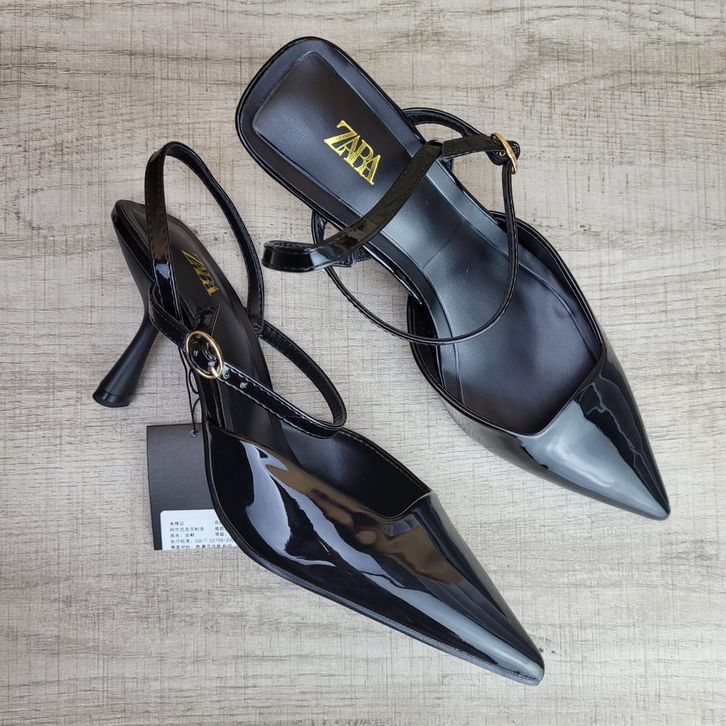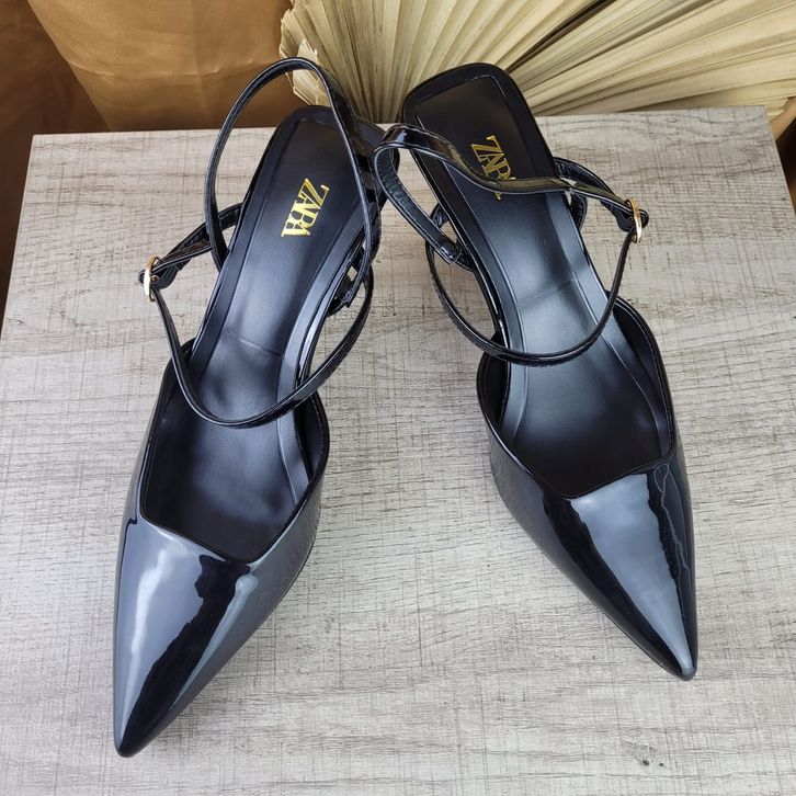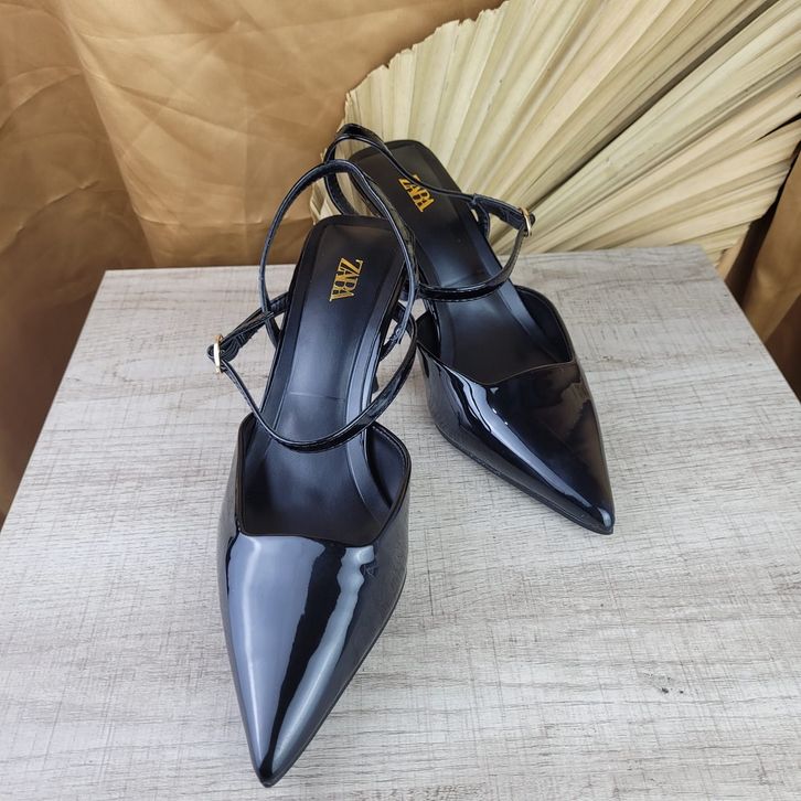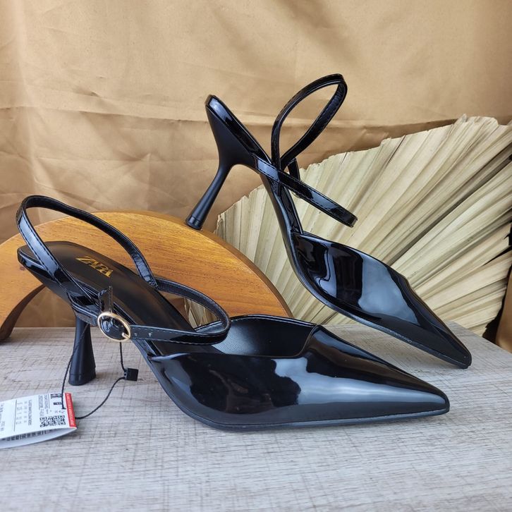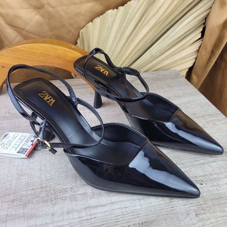 ORIGINAL Sepatu Slingback ZARA Wanita Sepatu Zara Heels Shimmery Slingback Shoes 800482-3 9cm