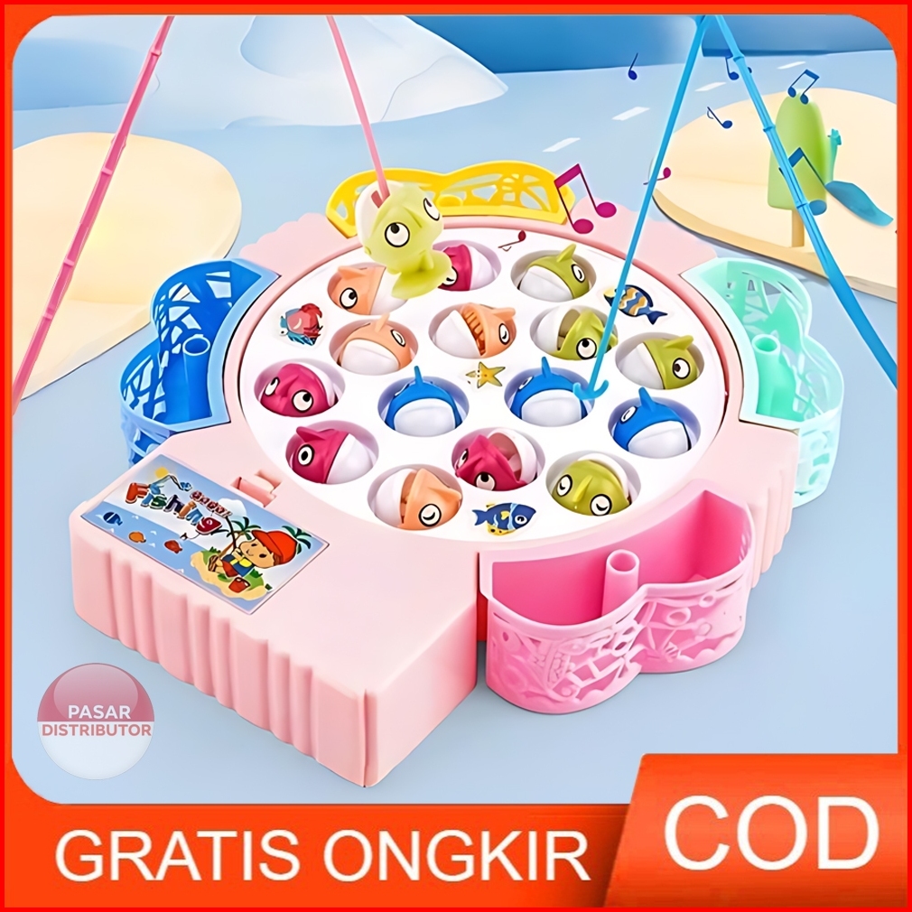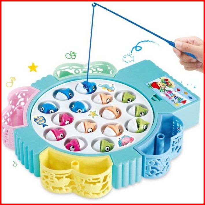 Pasar Distributor Fishing Game 15pcs Mainan Pancing Ikan Elektrik Anak Musik Berputar Edukatif Lucu
