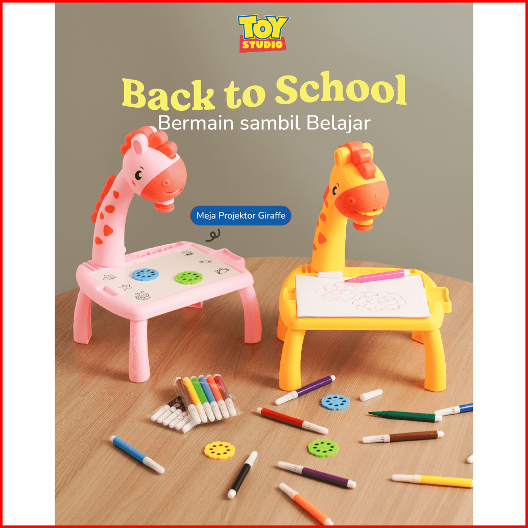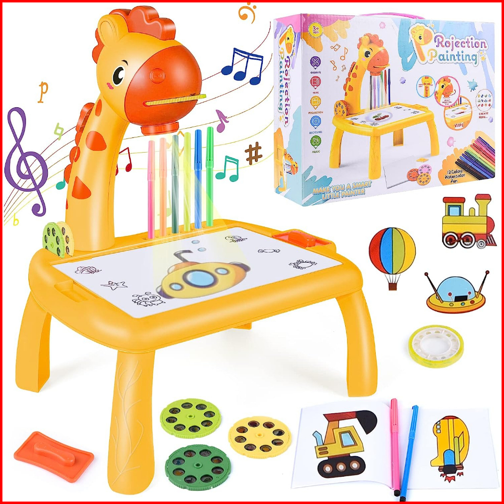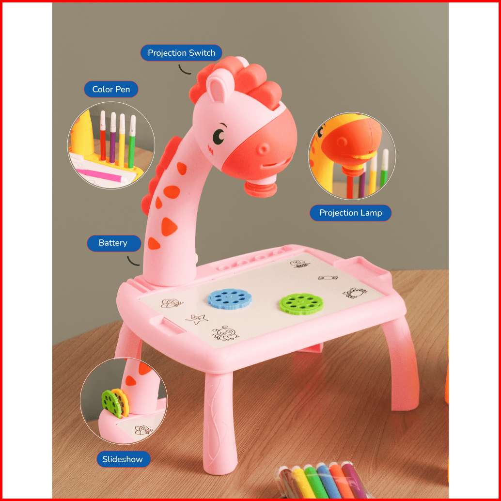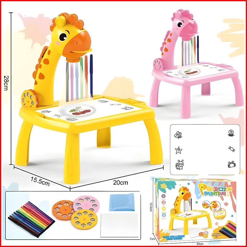 Mainan Edukasi Anak Meja Giraffe Proyektor Projector Meja Belajar Melukis Mewarnai Anak