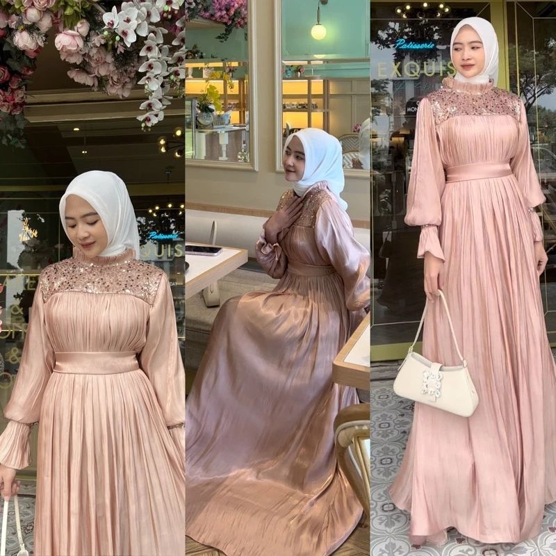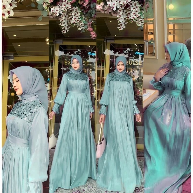 Neira Dress Shimmer Mix Spangle Busui Friendly Termurah Include Belt Baju Kondangan Pesta Lebaran