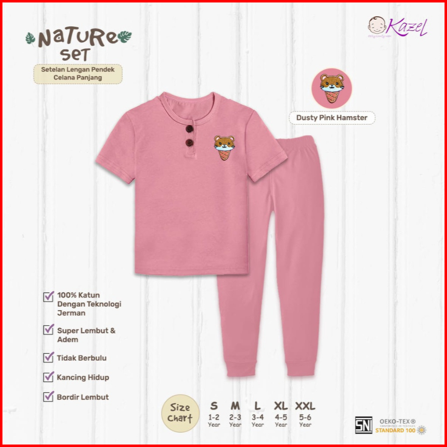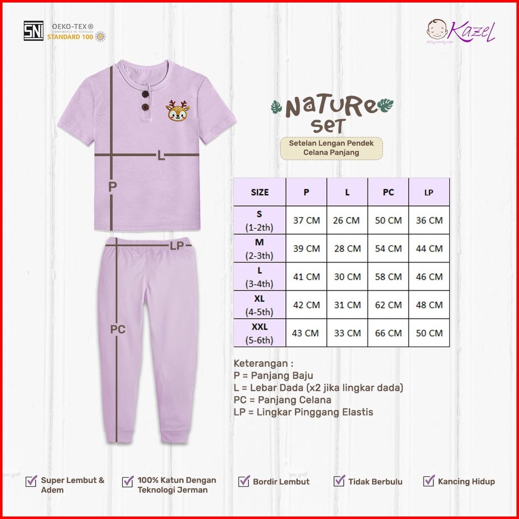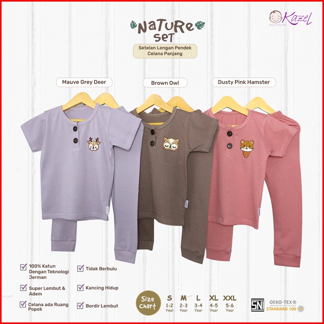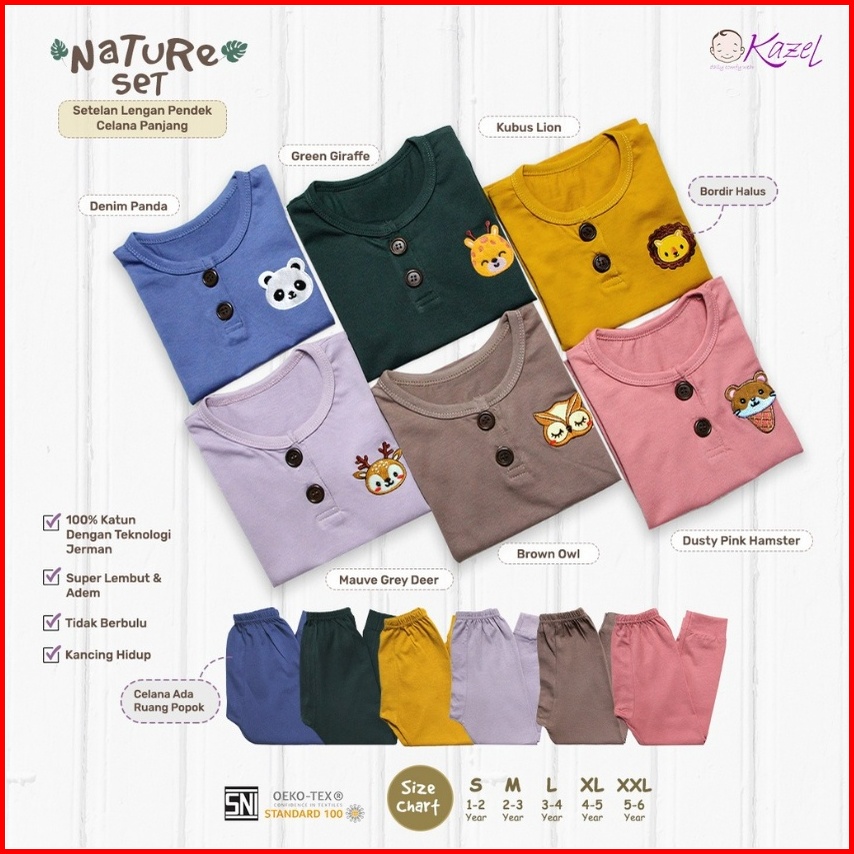 Ambyar Kazel Nature Set 1-6 Tahun Setelan Playset Bordir Anak Kombinasi Baju Pendek Celana Panjang Cbks So Sdi