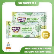 MAMYLOVE BABY WIPES NATURAL ANTIBACTERIAL GREEN TEA 50S (BUY 1 GET 1)