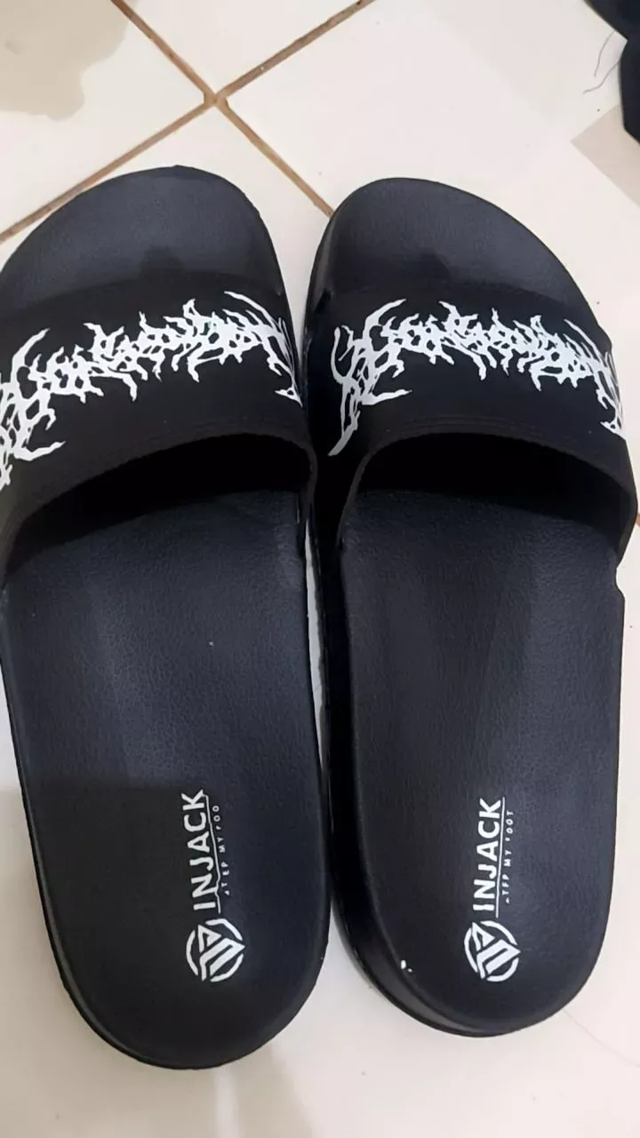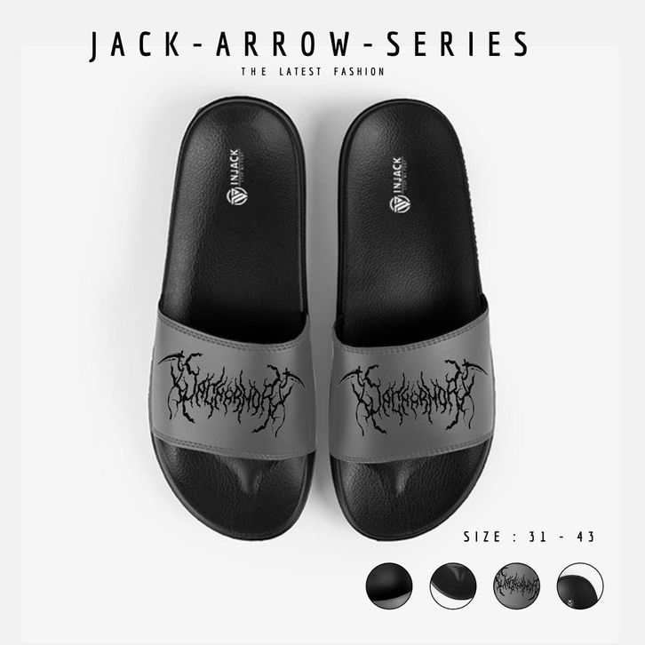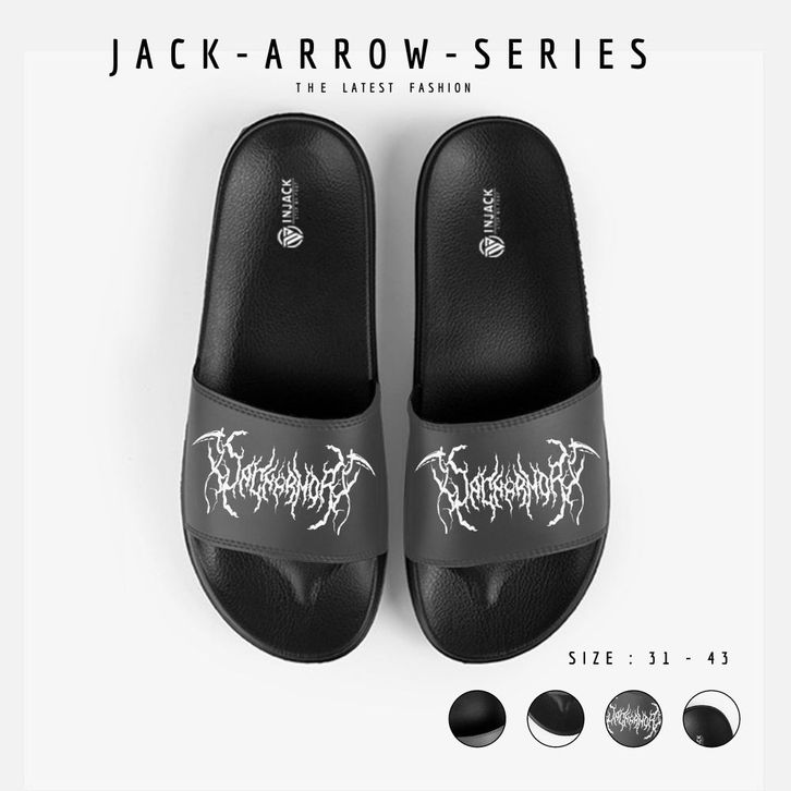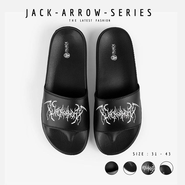 Sandal Cowo Motif Jack Arrow Series Sendal Slip On Sliper Empuk Laki Laki Cowok Anak Remaja Warna Hitam Polos Size 31-43