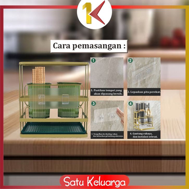 SK-C997 Tempat Sendok Garpu Sumpit Gantung Set Minimalis dengan Peniris Serbaguna
