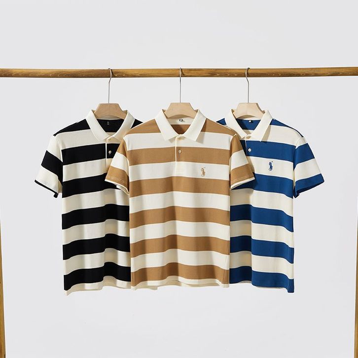 Polo Shirt Pria Kaos Distro Kerah Stripe Bordir Casual Lengan Pendek Premium Original Korean Style Slimfit Murah