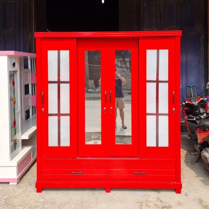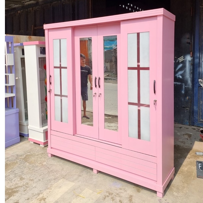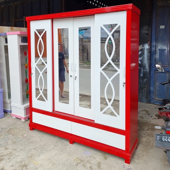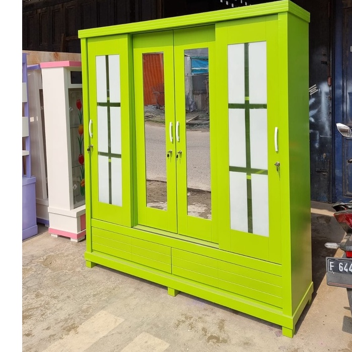 [Star] (Free Ongkir) Lemari Baju 4 Pintu Sleding / Lemari Pakaian 4 Pintu