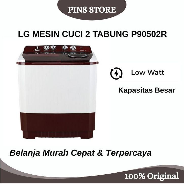 Mesin Cuci 2 Tabung 9Kg LG P9050R P9050RTB Kapasitas Besar Cucian Bersih Tanpa DP