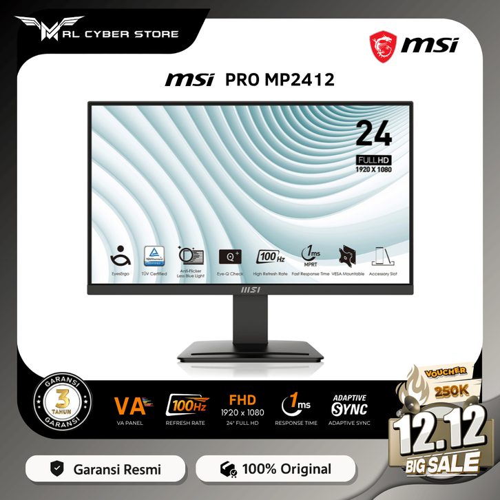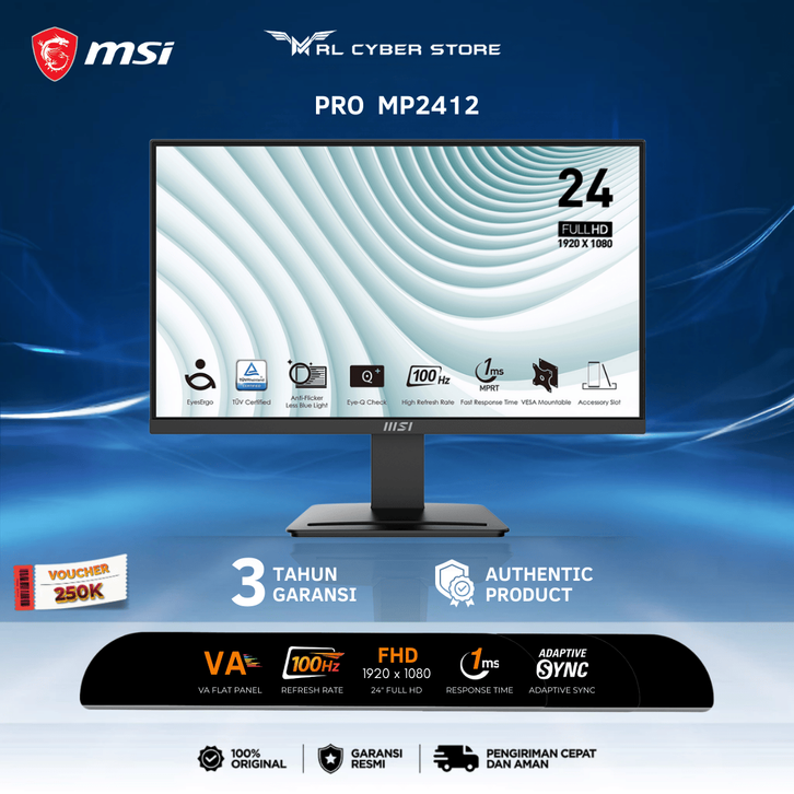 MSI PRO MP2412 FULL HD 24 INCH 100HZ MONITOR PC KOMPUTER/COMPUTER MONITOR 24 INCH GARANSI RESMI