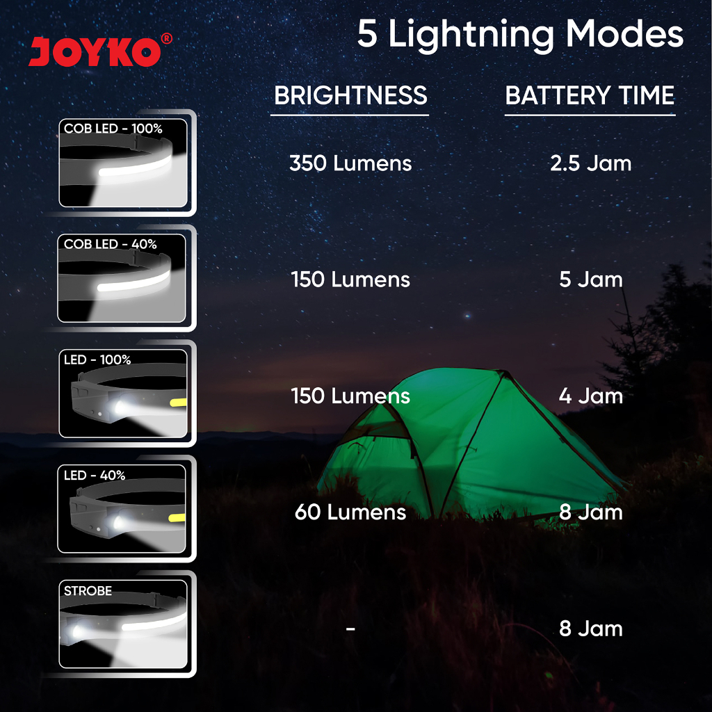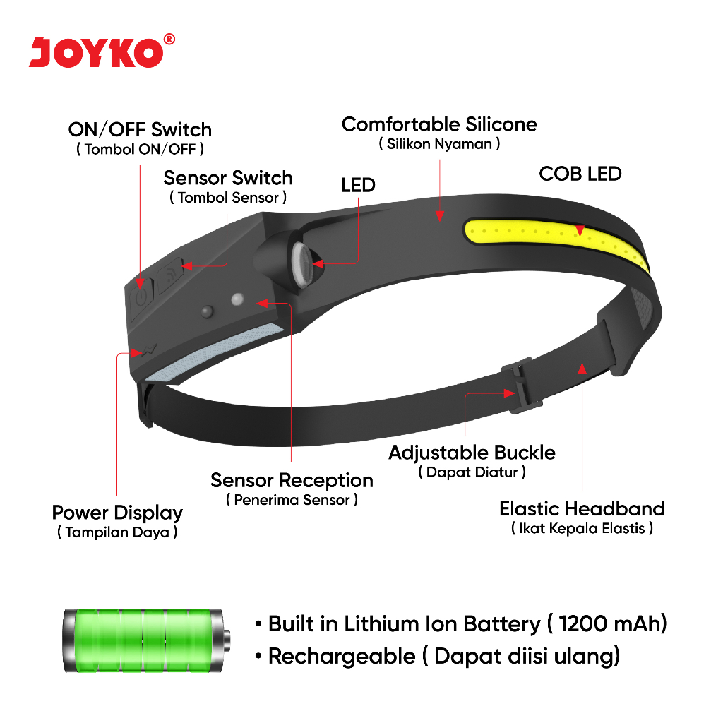 RECHARGEABLE LED HEADLAMP SENTER KEPALA LED ISI ULANG JOYKO HDL-250