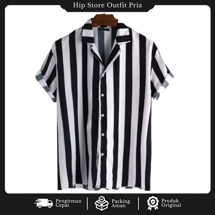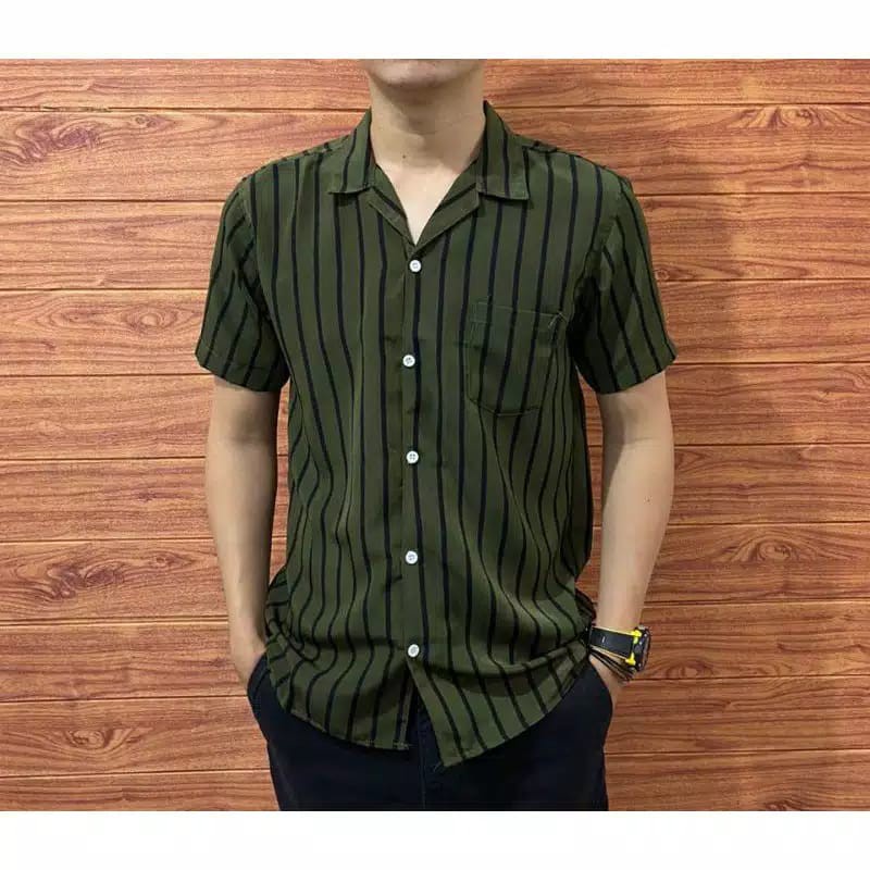 KEMEJA TANGAN PENDEK PRIA STRIPE SALUR GARIS GARIS KASUAL DISTRO