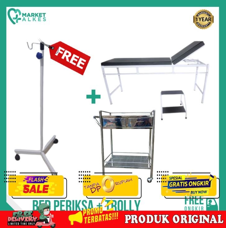 CICILAN/BARU+ MEJA PERIKSA BED PERIKSA PASIEN + TROLLEY TROLLY INSTRUMENT LACI 2 SUSUN
